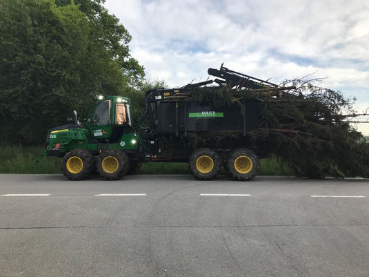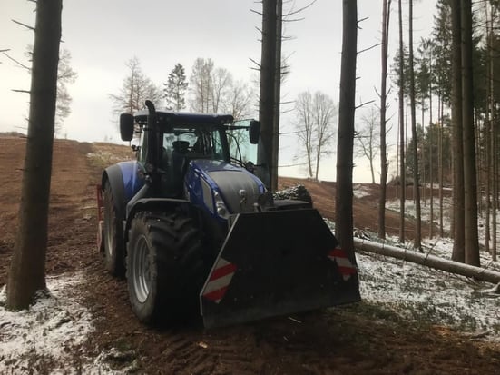 Mit unserer neuen Forstfräse können wir stehendes und liegendes Holzmaterial von Schlagabraum bis hin zu Wurzelstöcken zerkleinern. Das Holzmaterial wird dabei zerkleinert und verbleibt in Form von Holzspänen gleichmäßig verteilt auf der Fläche. Es werden somit optimale Bedingungen für die folgende Aufforstung geschaffen. Das Mulchgut bildet einen Verdunstungsschutz , hemmt den Grasaufwuchs und verbessert somit zusätzlich die Fruchtbarkeit des Bodens. Die Fräse kann bis zu 10 cm tief arbeiten und ist für Forstflächen und Gebüsche ausreichend. Für die Umwandlung in eine landwirtschaftliche Fläche ist eine tiefere Fräsung nötig, dies geschieht im zweiten Fräsvorgang mit einer Rodungsfräse.